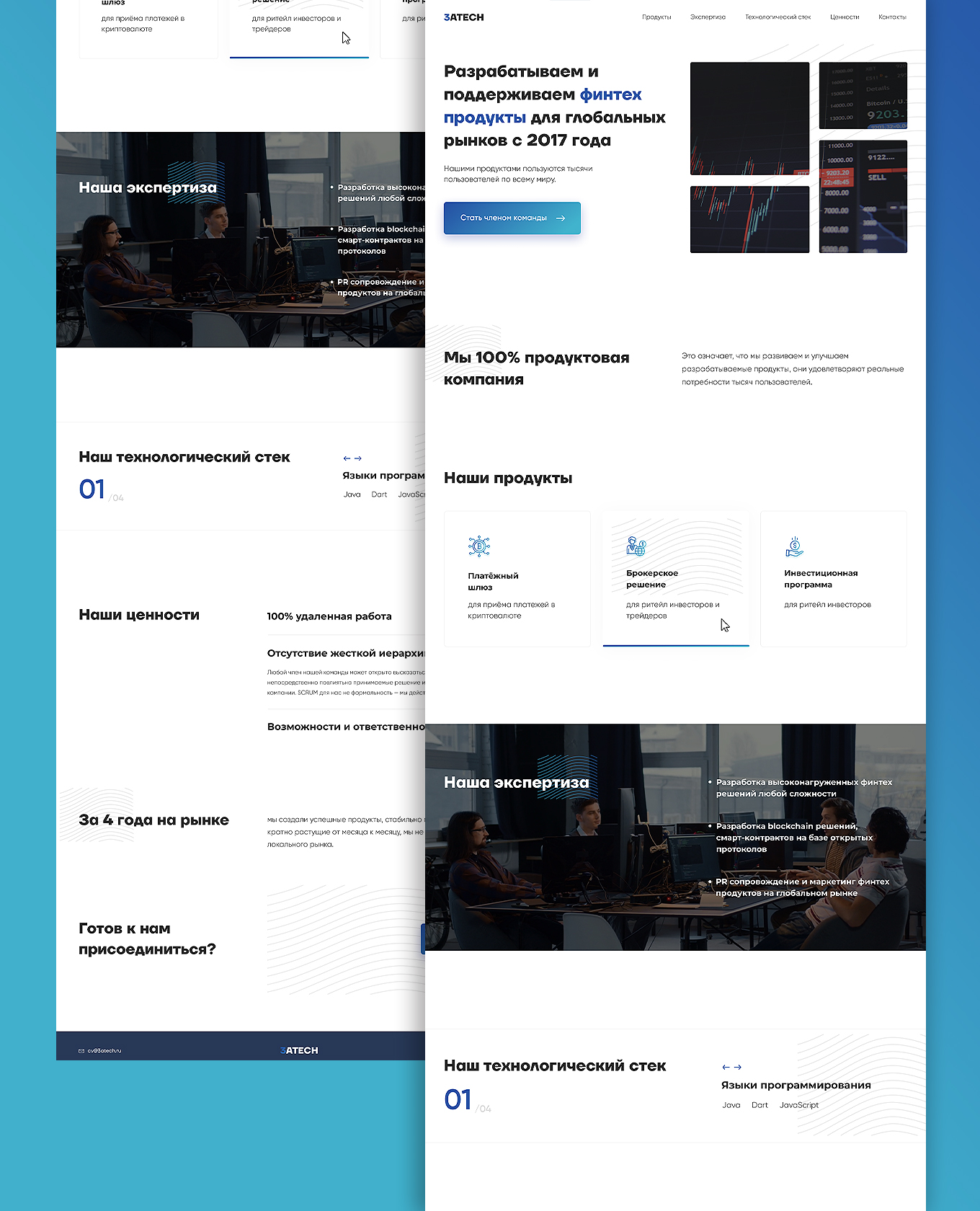 Clients wanted their page to present their expertise, product offerings, technological stack, values, and career opportunities. Design had to be clean and minimalistic.