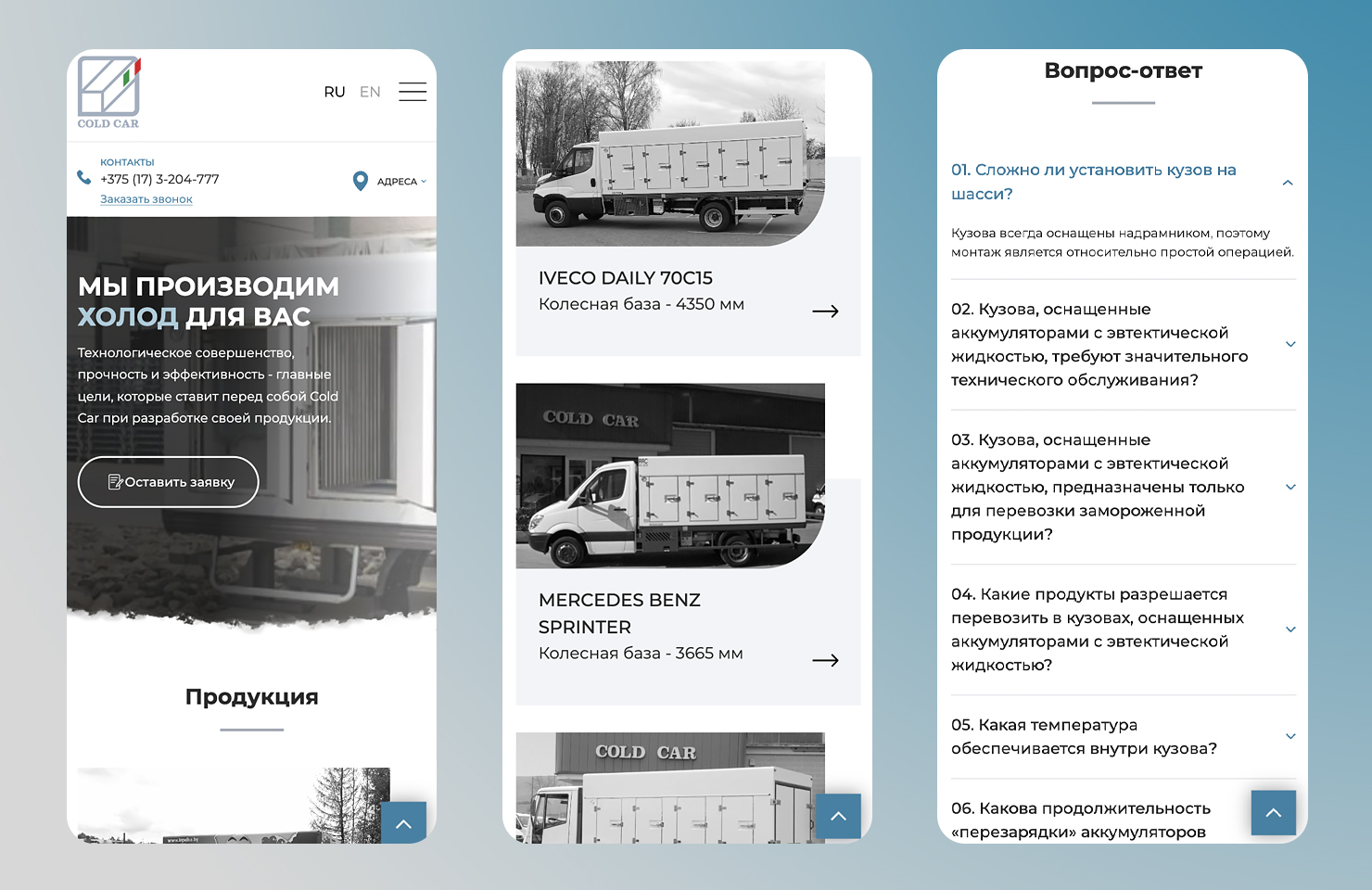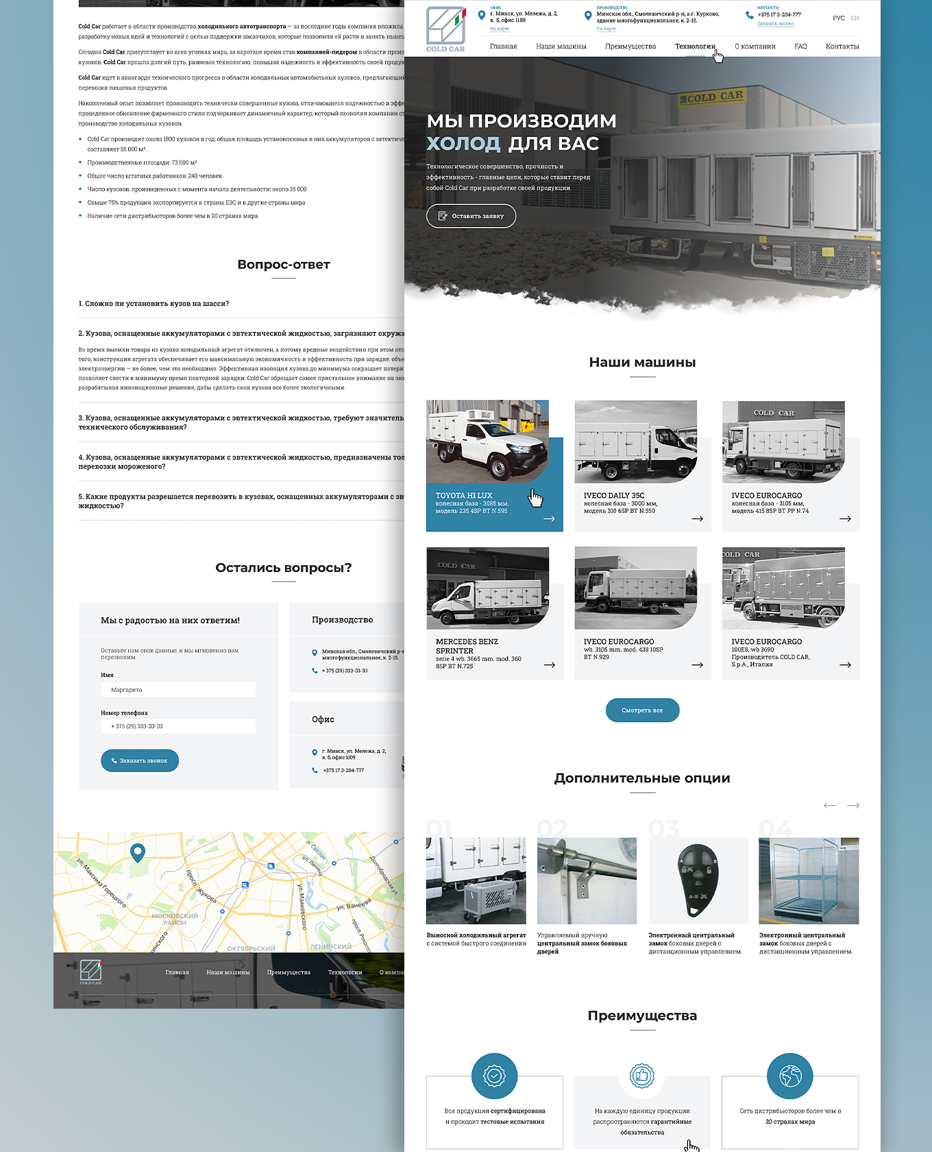 We developed a bilingual (English and Russian) landing page, which provides information about the entire range of Cold Car products, as well as an opportunity to make a purchase request.