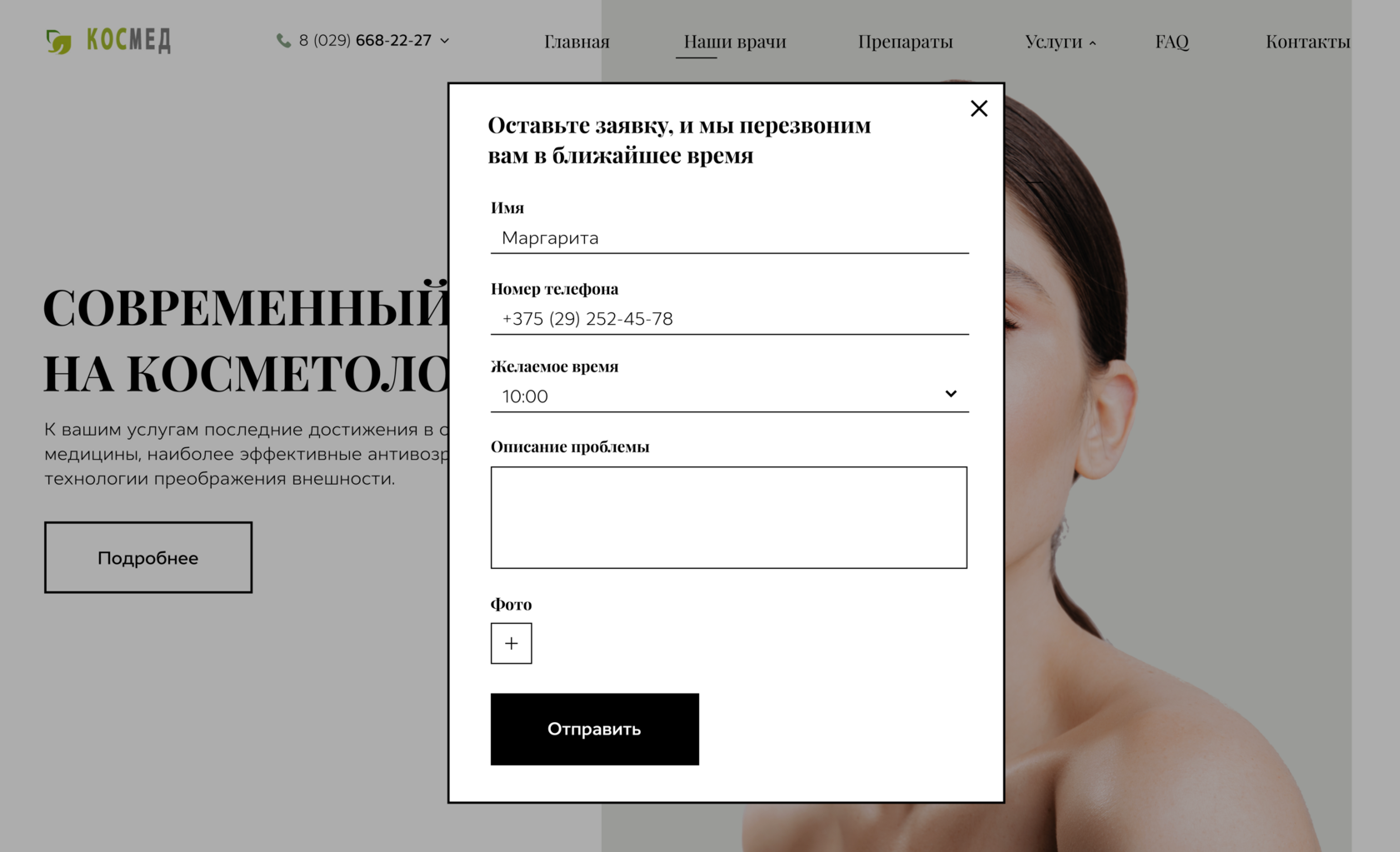 We decided to make a simple and user-friendly website, where a client could make an appointment from every page possible.