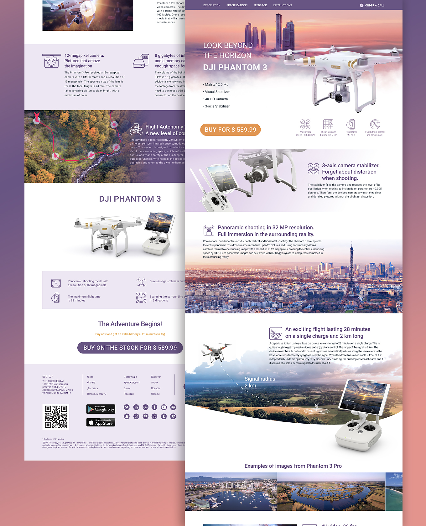 There's a new model of a camera drone DJI Phantom 3, so the landing page should describe all the new and best features of the device.