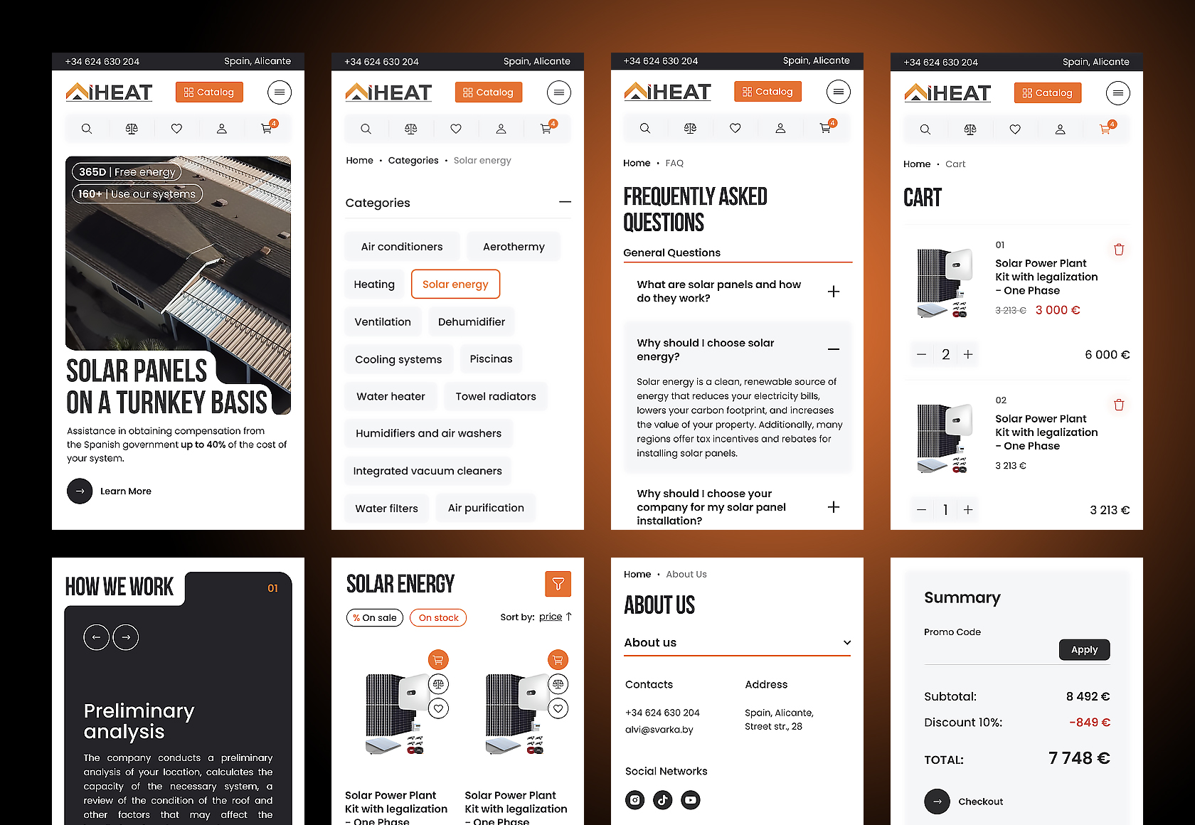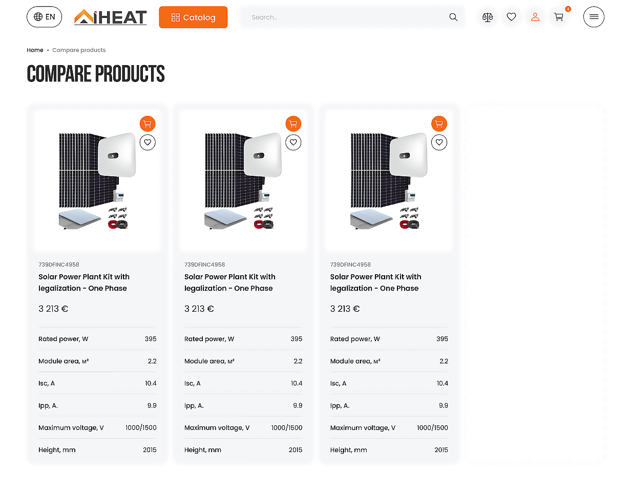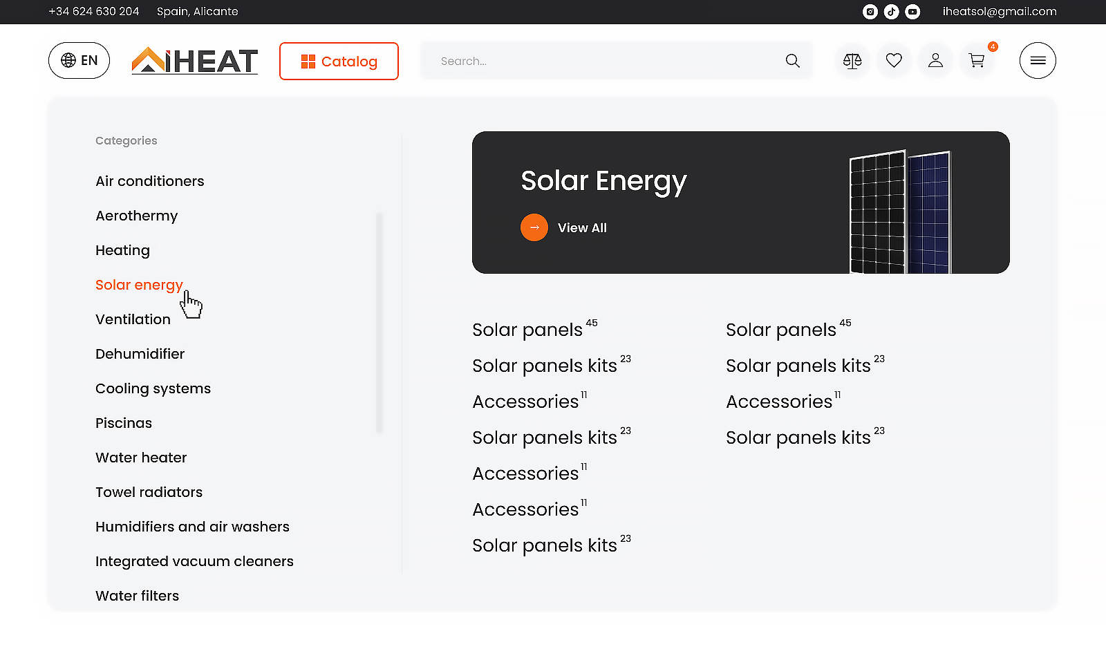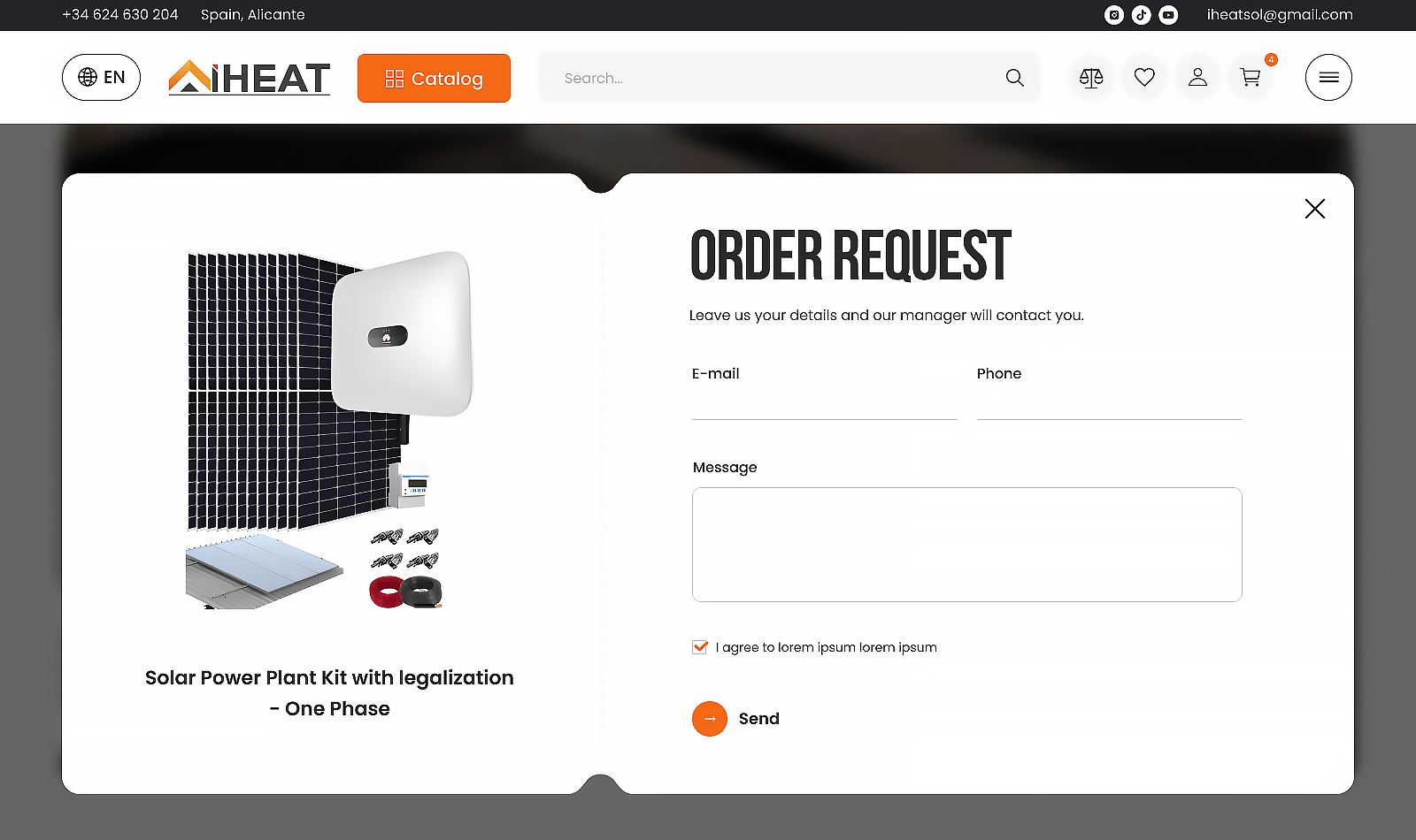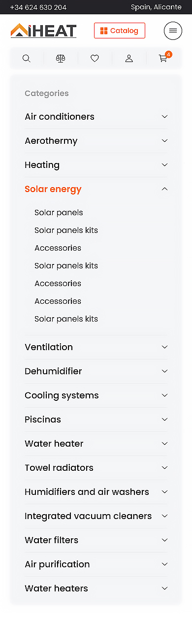 A multilanguage online store for IHeat - turnkey solar power stations service and heating systems supplier.