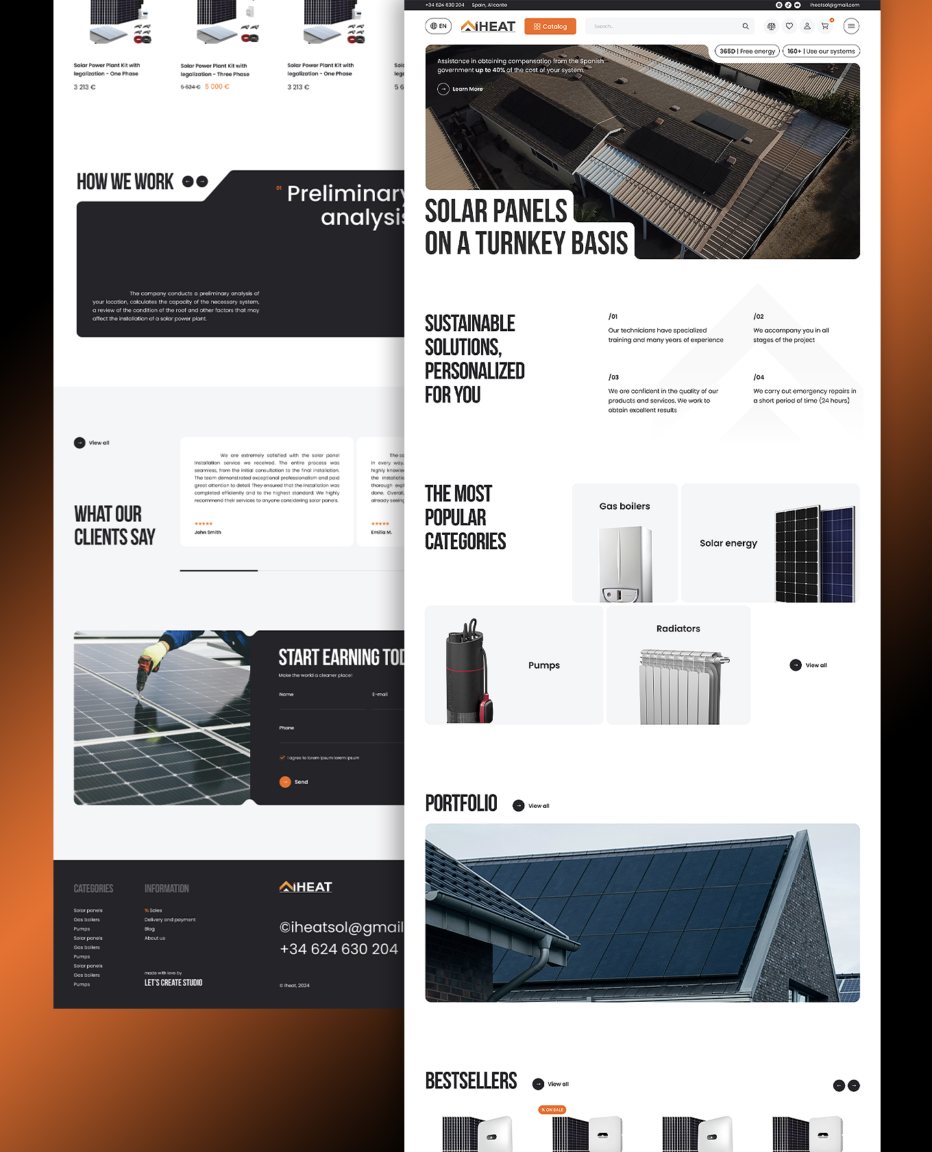 Also, the client has got two branches: turnkey solar power stations service and variety of heating equipment to sell.