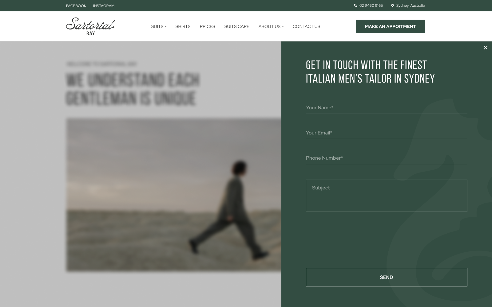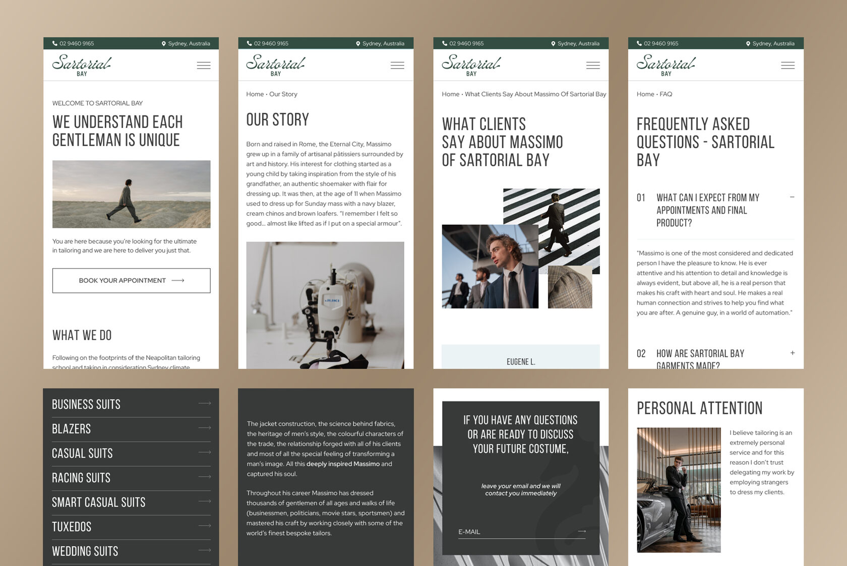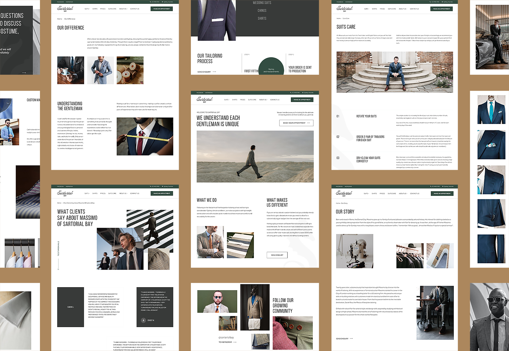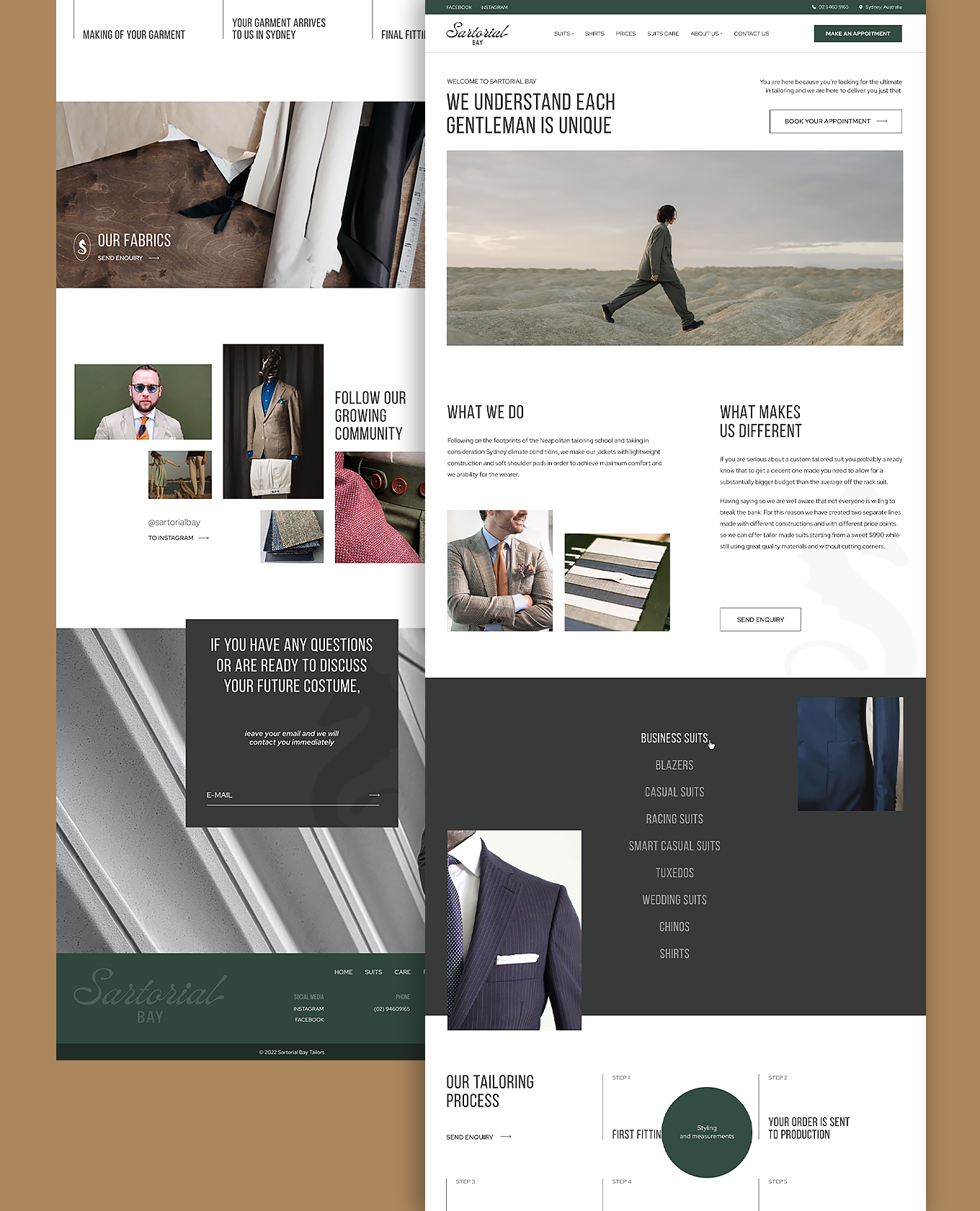 A service website design for Sartorial Bay - a company that makes tailored suits for men.