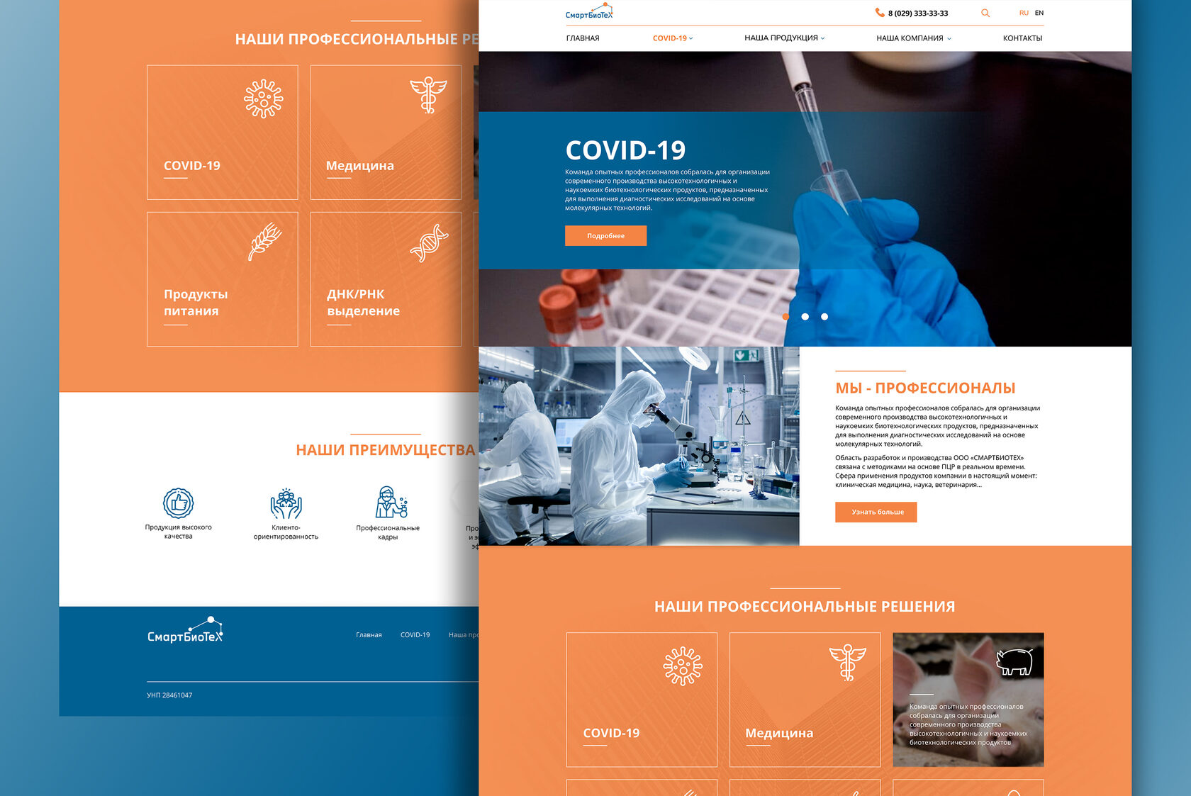 A service website for SmartBioTech - a team of experienced professionals gathered to organise modern production of high-tech and science-intensive biotechnological products designed to perform diagnostic tests.